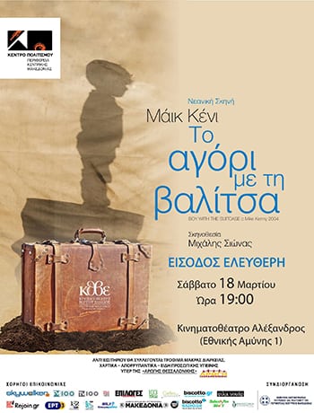 2η μέρα Σάββατο 18 Μαρτίου 2017 και ώρα: 19:00 - παιδική θεατρική παράσταση «Το αγόρι με την βαλίτσα» του Μάικ Κένι σε σκηνοθεσία Μιχάλη Σιώνα, από το Κ.Θ.Β.Ε.
